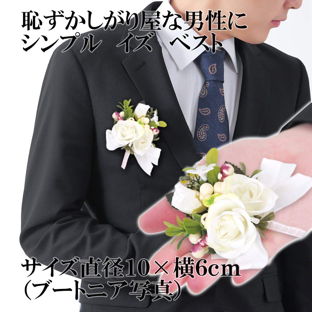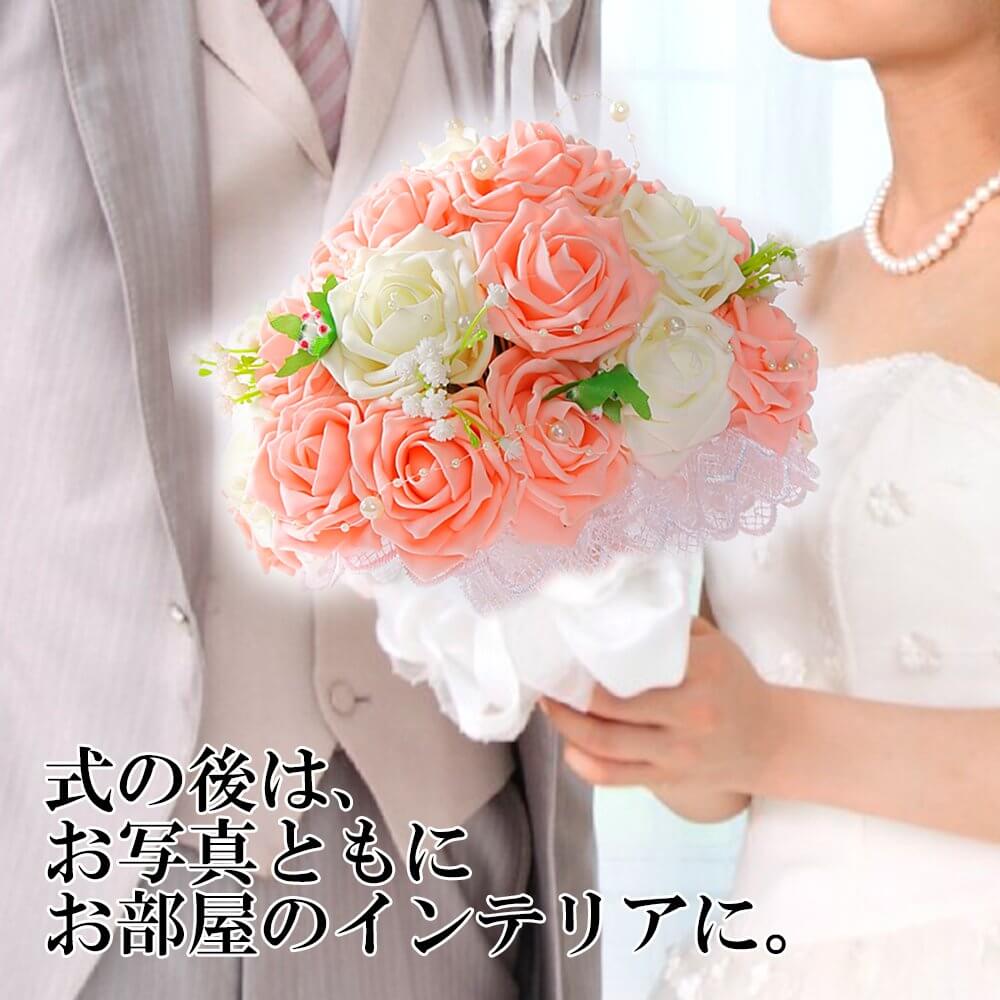ウェディング ブーケ ブートニア セット アートフラワー バラ プレゼント 母の日 (ホワイト・ピンク)