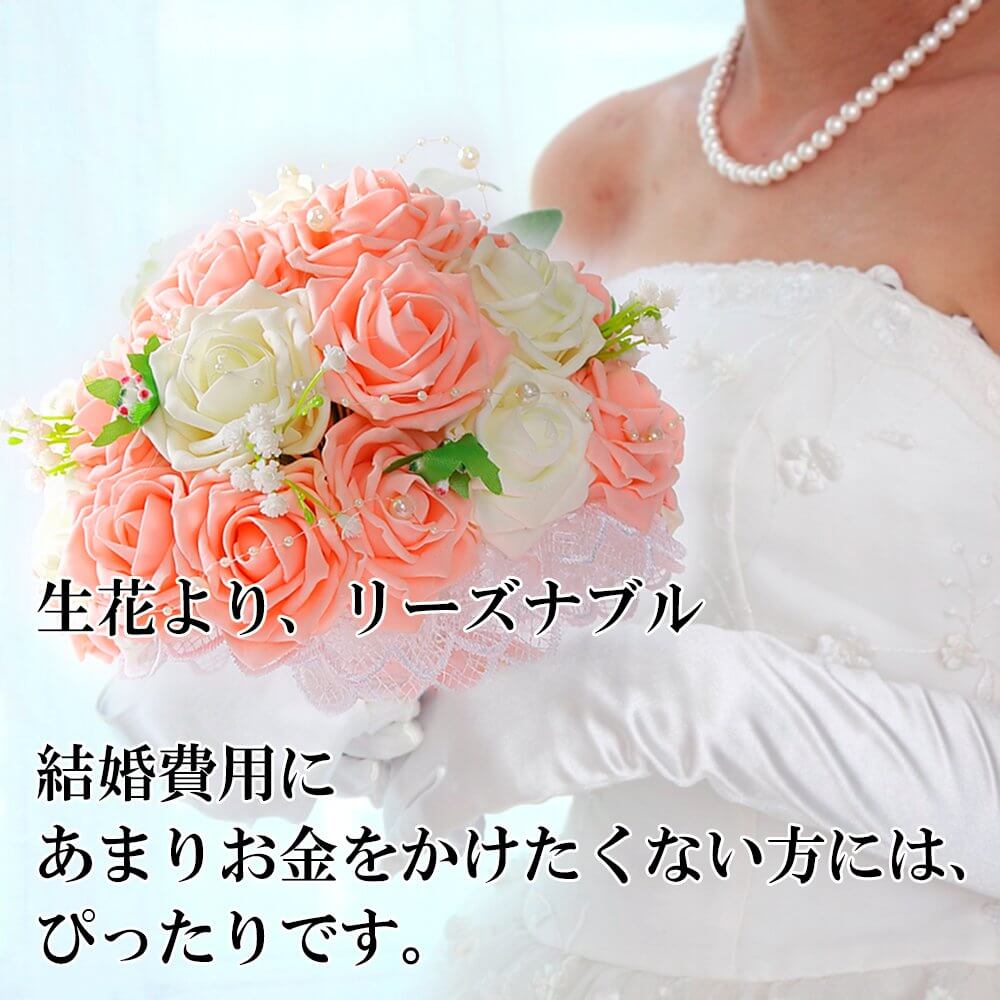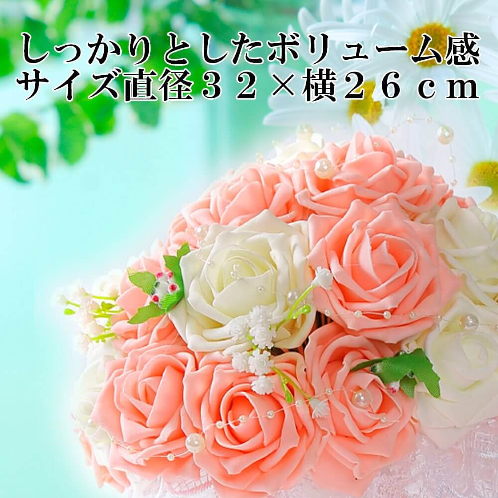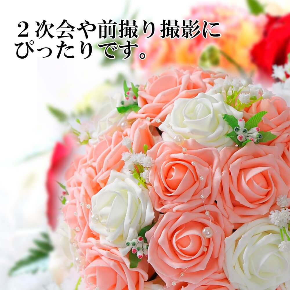 前撮り用のブーケとして購入。生花が苦手(虫とか)な娘の為に、ウェディングドレスにもカラ-ドレスにも合うものを選びました。普通の造花と違う素材でバラの質感があります。