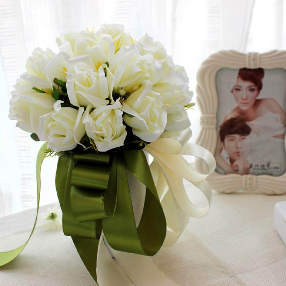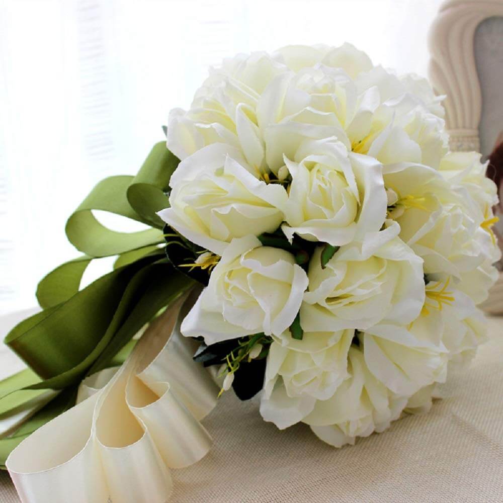 ウェディングブーケ ブライダルフラワーに 清楚で かわいい 白い バラの 造花の ブーケ