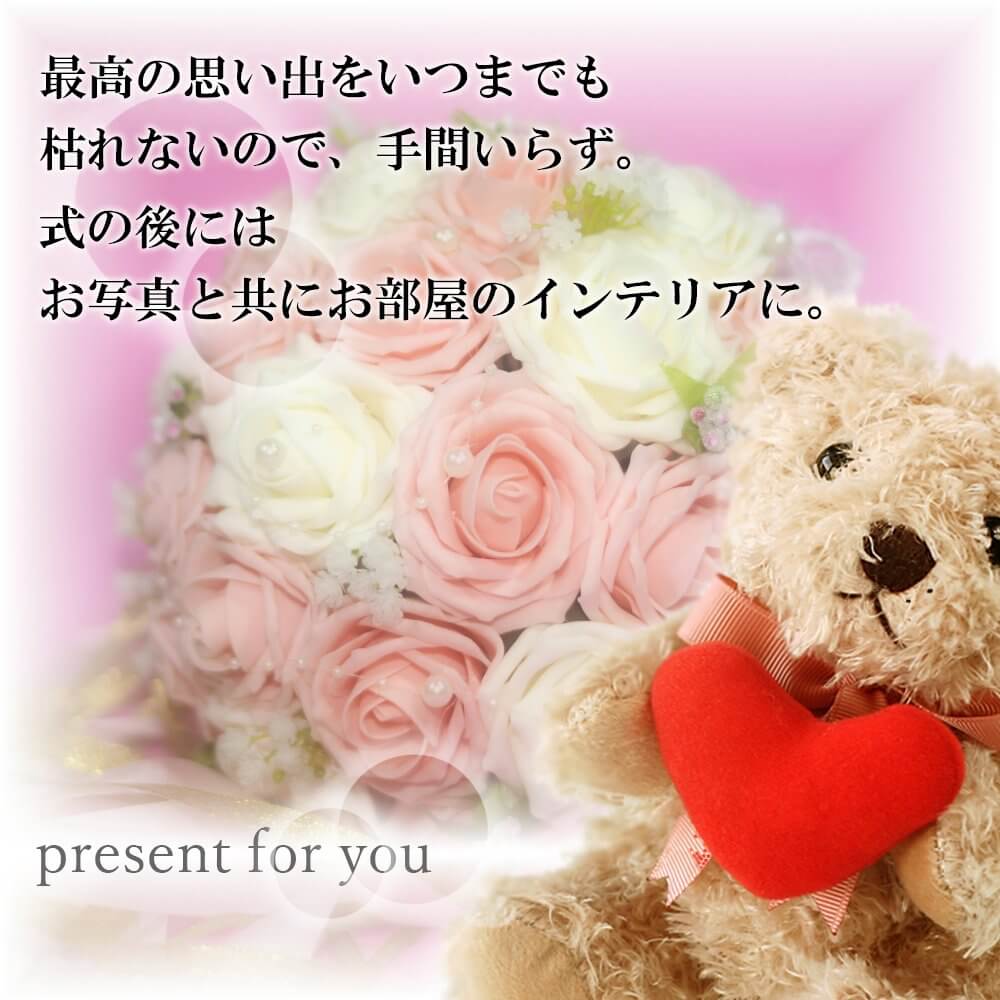 暑い日の結婚式や、写真撮影の時にも生花のようにお花の元気がなくなったり色が変わったりする心配もありません。